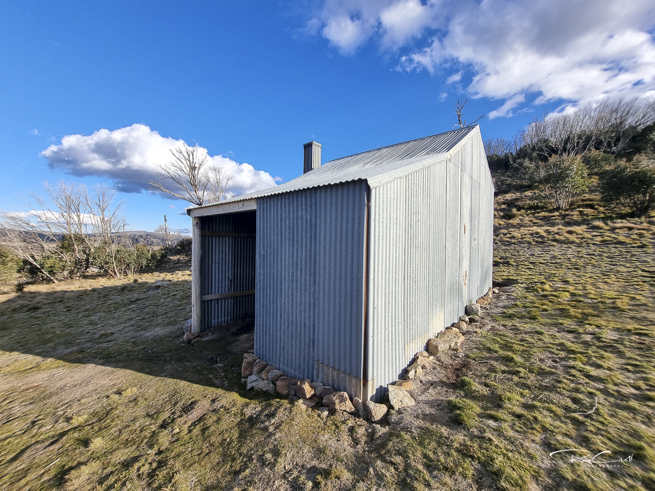 Brooks Hut was originally constructed in 1945 by Harry Reid and the brothers Bill and Cliff Brooks, who held a grazing lease west of Eucumbene Dam in Kosciuszko National Park. Built as a stockman’s shelter, the hut served practical needs during summer grazing seasons on Happy Jacks Plain. Its design was simple and functional—corrugated iron walls and roof, timber flooring, and a substantial stone fireplace. The foundation stones helped protect the structure from damp, contributing to its durability even after alpine grazing was banned in 1958.