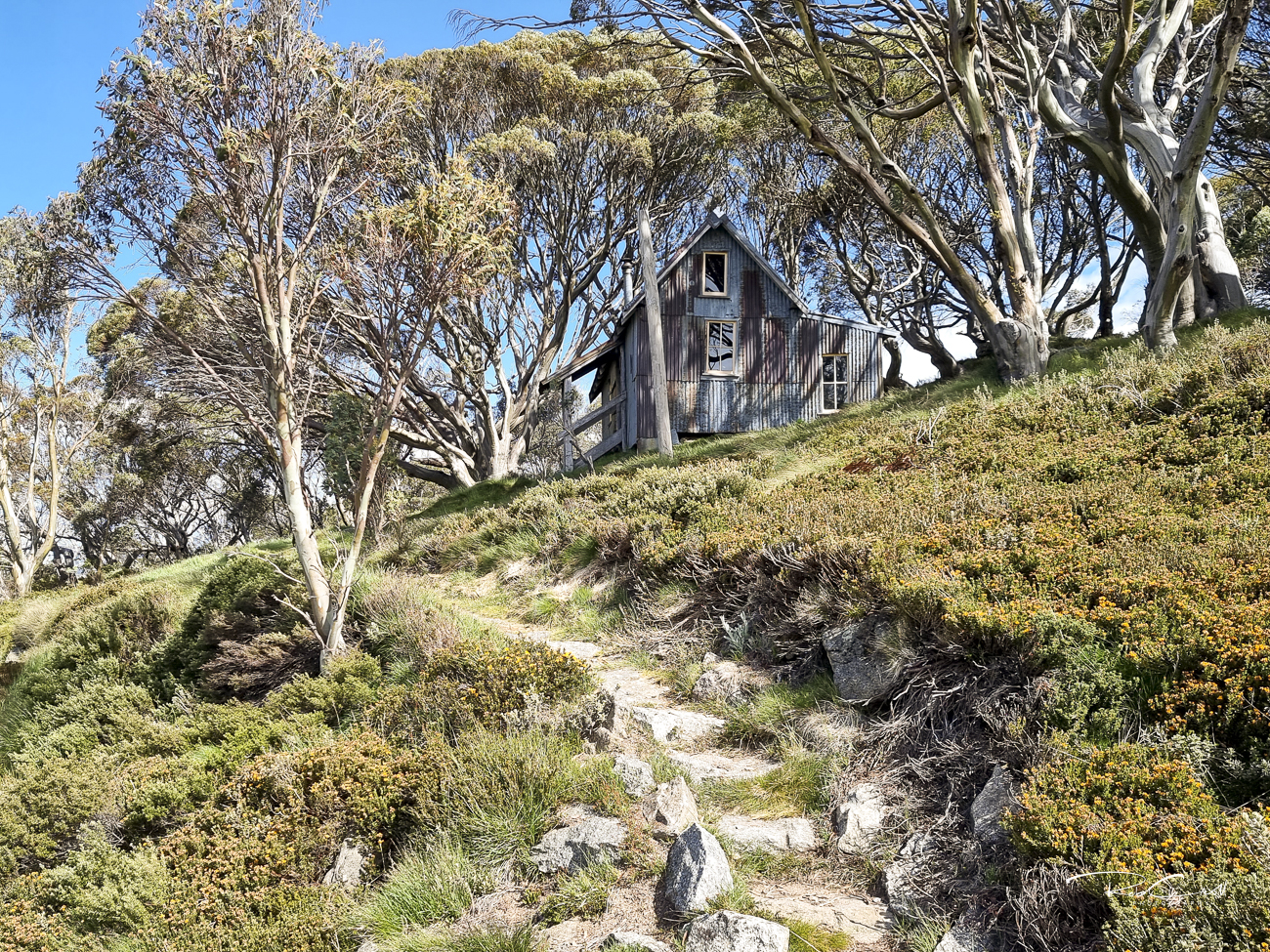 Today, Cope Hut is preserved as an emergency shelter only. Visitors are encouraged to camp nearby on designated platforms or grassy snowgum flats. The hut is easily accessed via a short walk from the Great Alpine Road and forms part of the Wallace’s Heritage Trail.