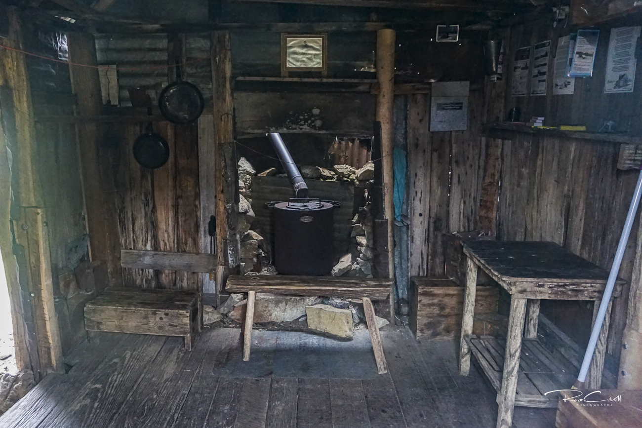The hut was constructed using salvaged materials, including slab walls, corrugated iron roofing, and even flattened five-gallon tins. A unique detail was the use of leather washers under every nail, a feature so distinctive that restoration teams replicated it during later rebuilds. For many years—until around 1981—a box of live dynamite was reportedly stored under one of the bunks, adding a touch of folklore to its already colorful history.