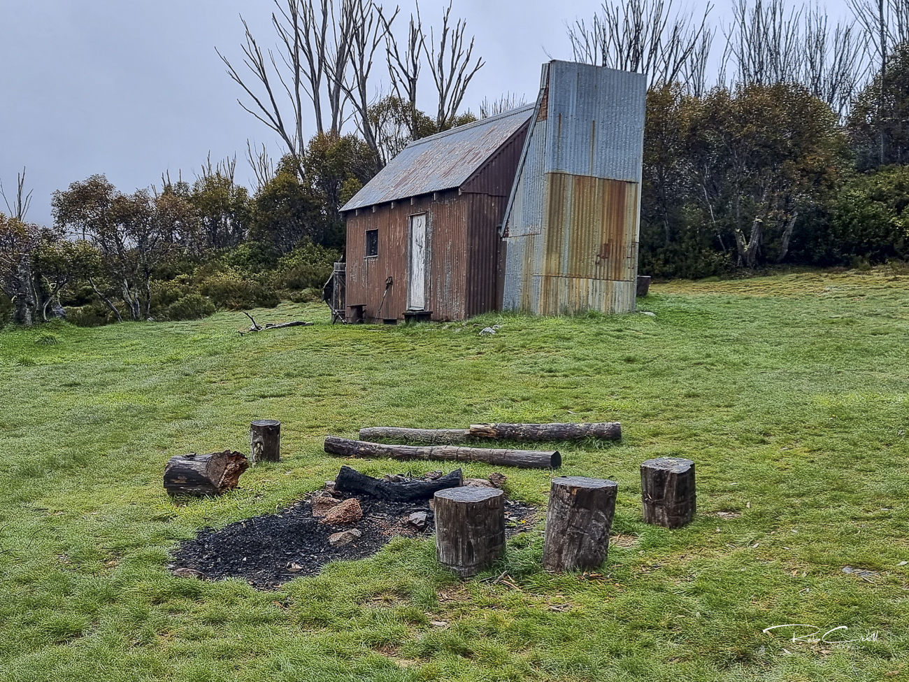In 1949, Jack and Jim Bolton reused materials from the earlier hut to construct the present building. Over the years, it has been adapted for recreational use, particularly by cross-country skiers, and is considered one of the key survival shelters in the park. The hut gained a quirky cultural footnote in the 1950s when artist Rufus Morris drew a series of fading charcoal murals—nudes and ghostly figures—on the interior walls during a snowed-in stay.