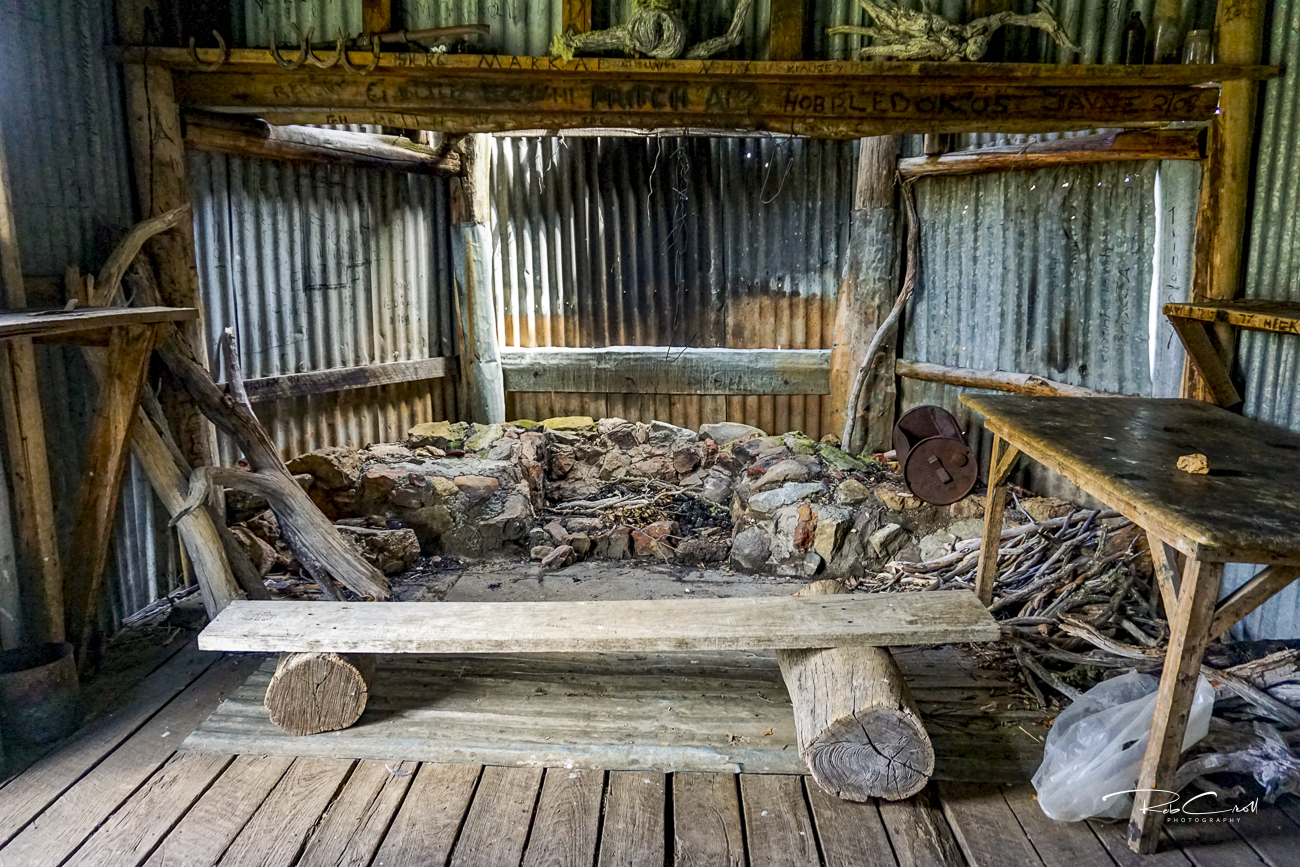 The hut consists of two rooms, with corrugated iron walls and roof, a wooden floor, and three shuttered windows. It’s particularly recognizable by its distinctive “eyebrow” window latches—a quirky detail that helps identify it in photographs. Though simple in design, it reflects the utilitarian style of mid-20th-century grazing huts and remains in good condition today.