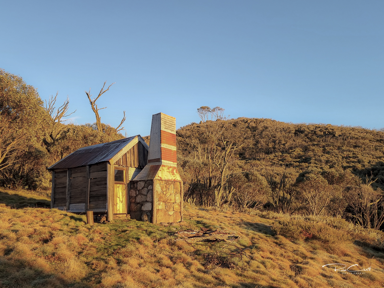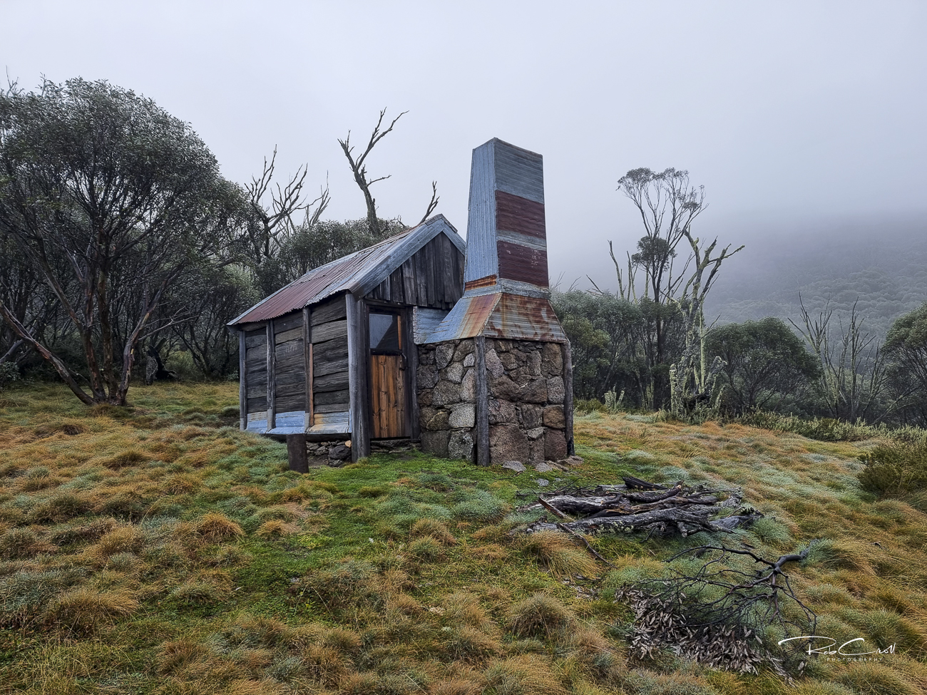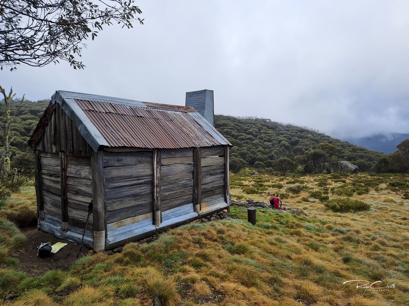 Teddys Hut was built in late December 1948 by Teddy McGufficke and the Pendergast brothers for summer grazing and brumby running. The hut’s mountain ash slabs were laid lengthwise to reduce shrinkage, and the fireplace was built from stone scavenged across the hillside.