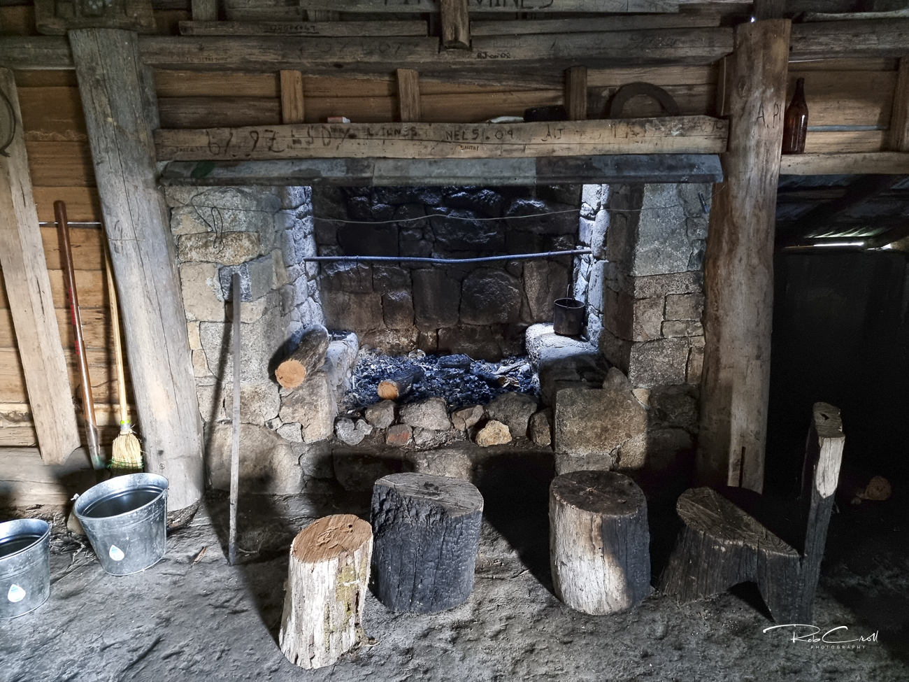 The floor is hard clay, polished smooth over time to resemble timber. Rustic furniture has been added by the Illawarra Alpine Club, the long-standing caretaker group.